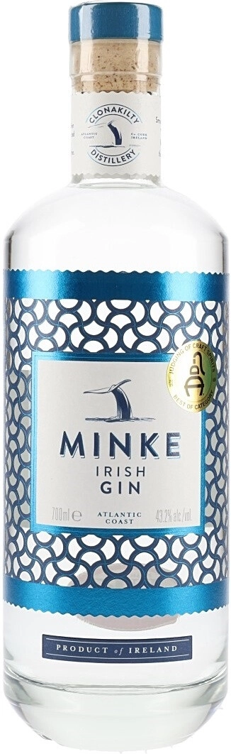 Джин Minke производится в Ирландии на винокурне Clonakilty и создан под впечатлением от прибрежной природы, в частности от полосатых китов минке. В рецептуре напитка ключевую роль играет самфир, редкое прибрежное растение, собранное в определённый сезон вдоль скалистого побережья Атлантики, что придаёт джину характерные морские и травянистые оттенки. Базовый спирт изготовлен из молочной сыворотки собственной семейной фермы, что обеспечивает напитку бархатистую текстуру и мягкую основу для ботанических компонентов. В букете заметны классические можжевеловые и цитрусовые акценты, дополненные кориандром, кардамоном и нотами ириса, а характерная растительная нота самфира сочетается с лёгкой солью и пикантностью фенхеля. Послевкусие сложное и гладкое, с мягкой солоноватой нотой и пряными оттенками перца и аниса. Рекомендуется употреблять со льдом, тоником и ломтиком лимона или лайма, что подчёркивает свежесть и цитрусовые грани этого джина. Продукт отмечен наградой американского Института Дистилляции 2019 года как Best Signature International Botanical Gin.