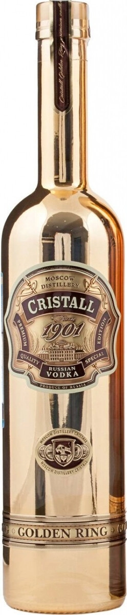 Водка Голден Ринг представляет собой классическую русскую водку премиального уровня, производимую на Московском заводе Кристалл в Москве. Напиток создан по фирменной технологии и впервые выпущен на обновлённом заводе в 2017 году. В рецептуре используются специфические ингредиенты, такие как изюм сорта Золотой, курага сорта Золотая и золотая пшеница, а при розливе применяется особая золотая фильтрация на шелковых нитях, что подчёркивается оформлением бутылки золотого цвета. Водка характеризуется мягким и чистым вкусом, в аромате отмечаются ноты спелой пшеницы, изюма и медовой кураги, при этом отсутствует выраженная спиртуозность. Продукт позиционируется как премиальный и рассчитан на употребление в чистом виде в качестве аперитива, а также как компонент для коктейлей и в сочетании с традиционными блюдами русской кухни. Производство ведётся в Москве на площадках Московского завода Кристалл, история которого восходит к началу XX века, а современная технология розлива подчёркивает внимание к качеству и презентации товара.
