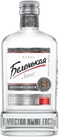 Водка Беленькая Люкс представляет собой классическую российскую водку из линейки Luxe, произведённую компанией Novabev Group. Напиток подчёркивает традиционные технологии производства: использование чистой родниковой воды и натурального мёда, а также многоступенчатую фильтрацию через кварцевый песок и высокую угольную колонну длиной 13 метров. Производитель отмечает отсутствие генетически модифицированных компонентов и применение защитных элементов упаковки, включая термопечать на контрэтикетке, систему контроля вскрытия и голографические элементы, что подтверждает внимание к качеству и подлинности. По органолептике это прозрачная водка с оригинальным водочным ароматом и мягким, нежным вкусом, подаваемая в стеклянной бутылке объёмом 0.25 л. Напиток позиционируется как универсальная столовая водка и рекомендован к употреблению в сочетании с традиционными блюдами русской и украинской кухни, где его мягкость способствует гармоничному сочетанию с солёными и пряными закусками. Беленькая Люкс производится на заводе Традиции Качества и входит в число популярных продуктовых позиций на российском рынке.