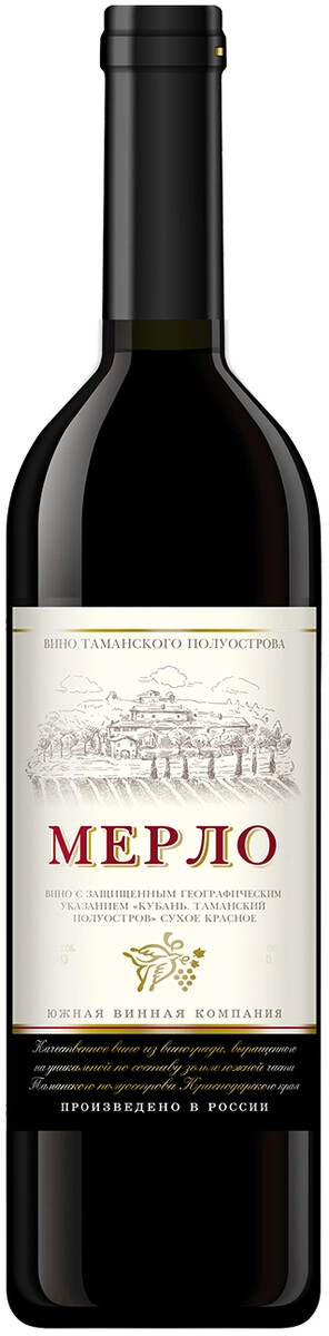 Вино Merlot Dry, Yuzhnaya Vinnaya Kompaniya, 0.75 л