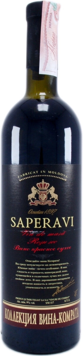 Вино Саперави, Вина Комрата, 0.75 л
